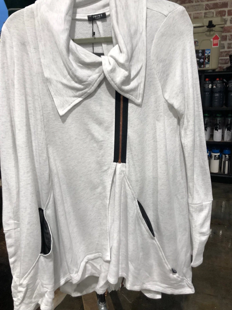 Did someone say autumn? This Light Gray Drape Jacket is ready. In our coziest French Terry, this top is genius, thanks to its unique details: an asymmetrical hem, a stylish zipper and a cool collar. Whether you wear it on cooler summer nights or all day this fall, this is one staple you’ll always reach for. Made in the USA