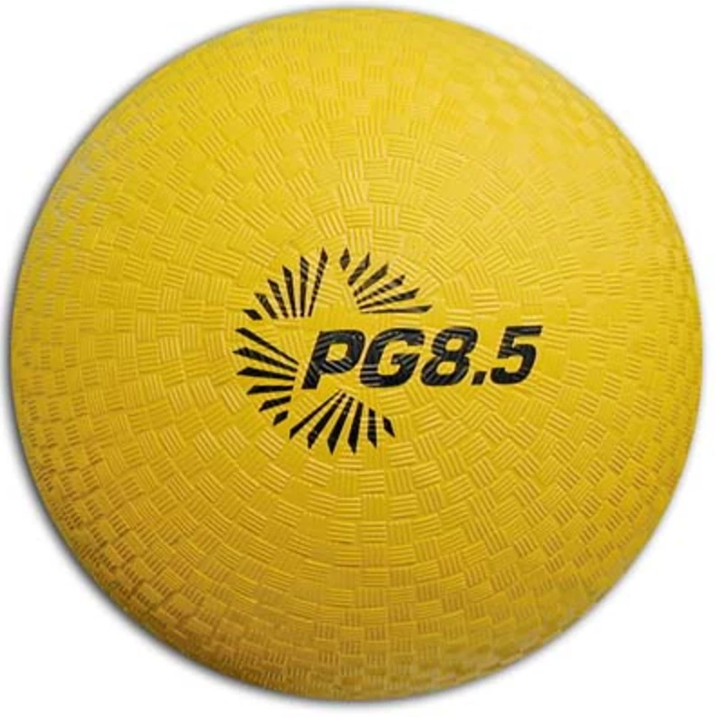 This fun playground ball or kickball can be used on all surfaces. Bounce it in the gym, throw it around the beach, or take it outside for street play. It has a two-ply nylon-wound construction and is water-resistant. This ball has a 8.5 inch diameter. This ball comes in many bright colors.