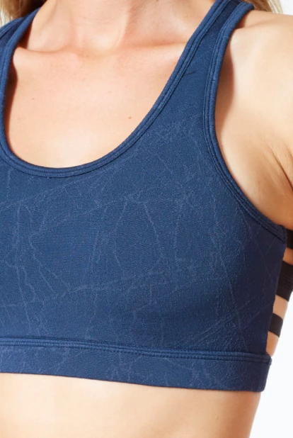 This stunning sports bra features breathable fabric and stabilizing elastic bands at the back for added support and style that packs a punch. Offered in a unique texture, a streamlined front is balanced out by the trendy back treatment and a binding trim that frames the overall look. This racerback design is made for layering, so wear it on its own or with an open back top to show it off.