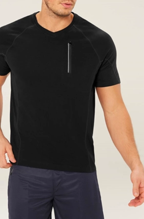 - Short sleeve. Sweat-zone ventilation panels, reflective accents, and zip chest pocket. With the breathable, moisture-wicking performance details you expect. Tencel®. Semi-fitted. Sizes S-2XL.