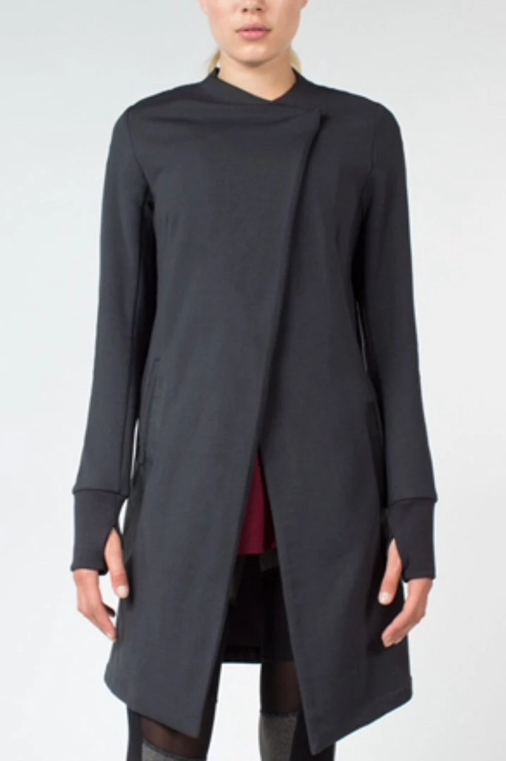 Storm cuffs and a ribbed trim collar add extra warmth to this flowing, relaxed fit design. Designed to drape elegantly on the body, the wrap secures with a simple snap button at the shoulder and features seam sealed pockets to protect your essentials. Crafted from Eco Elevation fleece with plenty of stretch for comfortable movement.