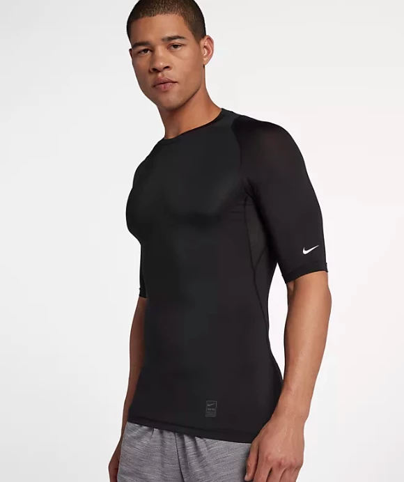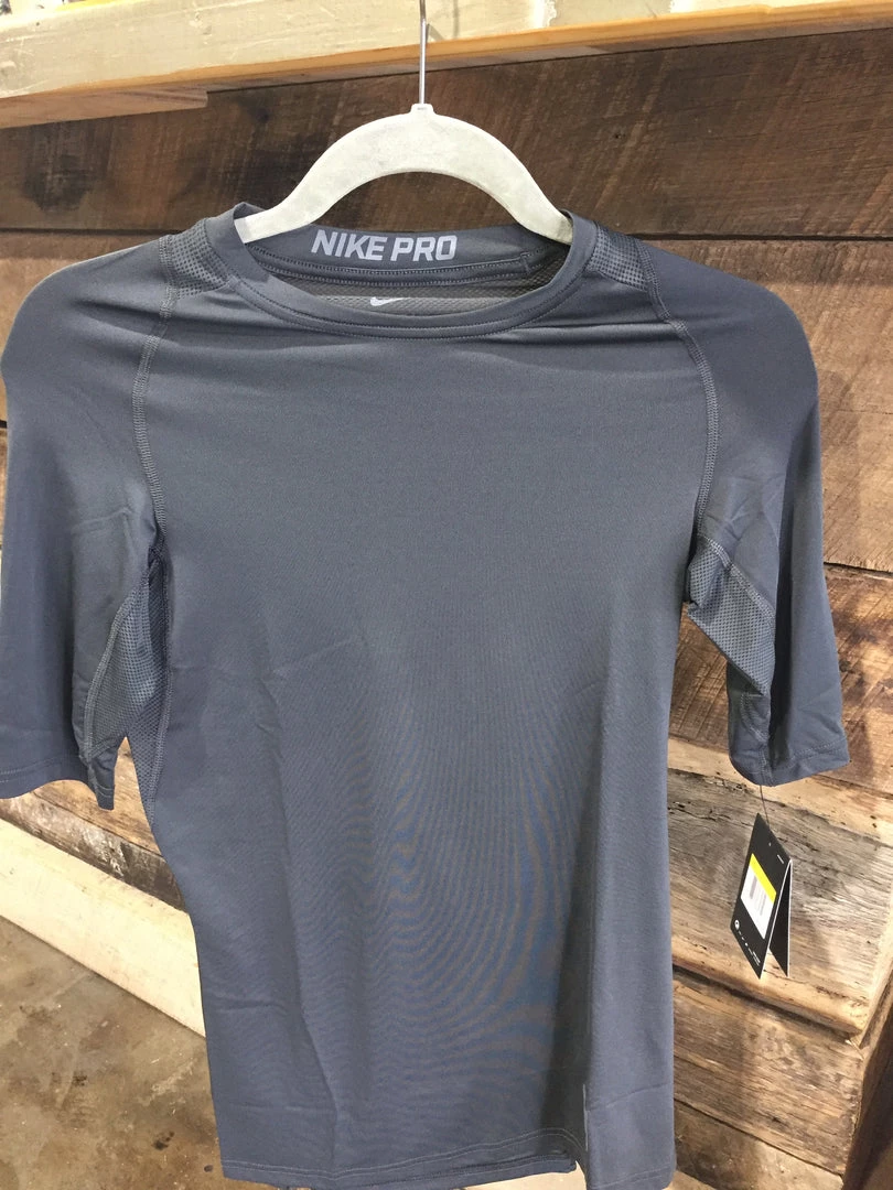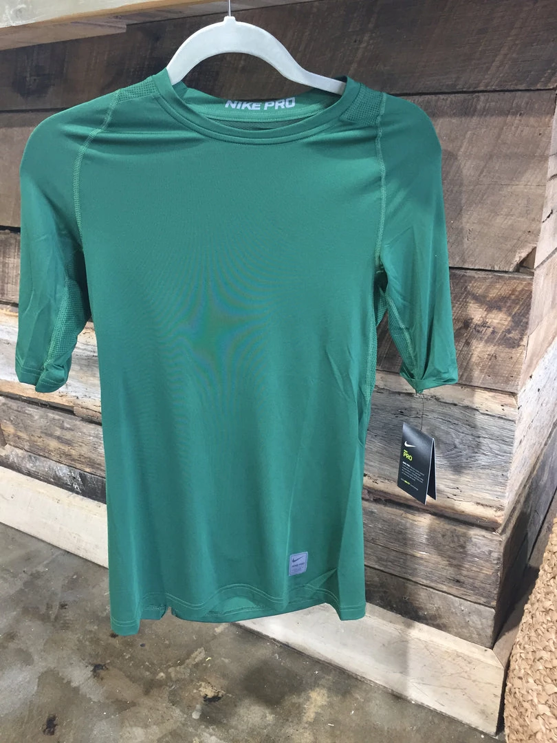 The Nike Pro Men’s 1/2 Sleeve Football Top features mesh panels and sweat-wicking fabric to help keep you cool, dry and comfortable. Available in green, grey, and black.