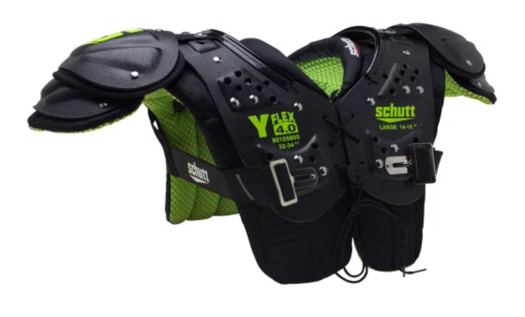 The Schutt Y Flex 4.0 All Purpose Youth Football Shoulder Pads has a new look for 2017, but it still delivers the protection and performance you expect from Schutt. This version packs more pop with it’s bright green padding and matte black arches, but the all-purpose performance makes it a great choice among youth players. The dual-density foam padding, breathable mesh and 7mm vent holes allow air to flow freely, keeping you cooler than most other youth pads. The three-point belt system ensures a snug fit and secures the pads from shifting.