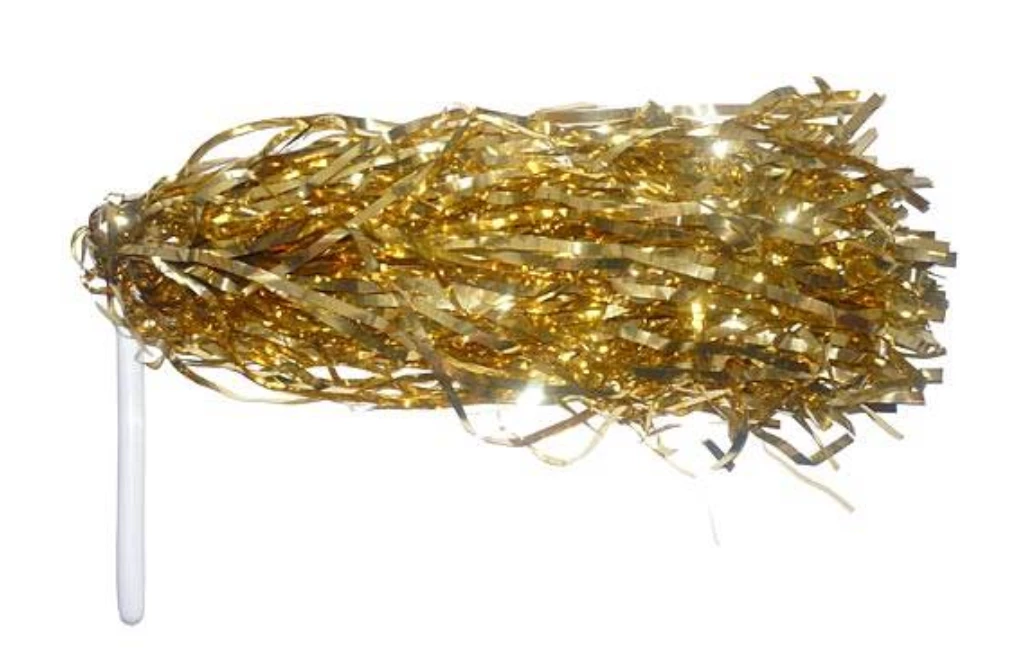 These Metallic Gold Flexible Handle Poms feature a 6″ flexible white handle and 256 gold metallic strands that measure 15″ long. These affordable Metallic Gold Flexible Handle Poms make a great fundraising item.