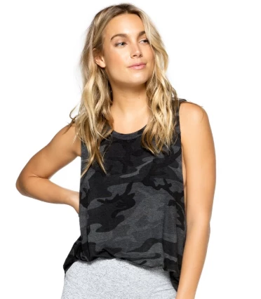 Style Notes:Â Our everyday muscle tank designed with low armpit holes and sewn in a lightweight burnout fabric.