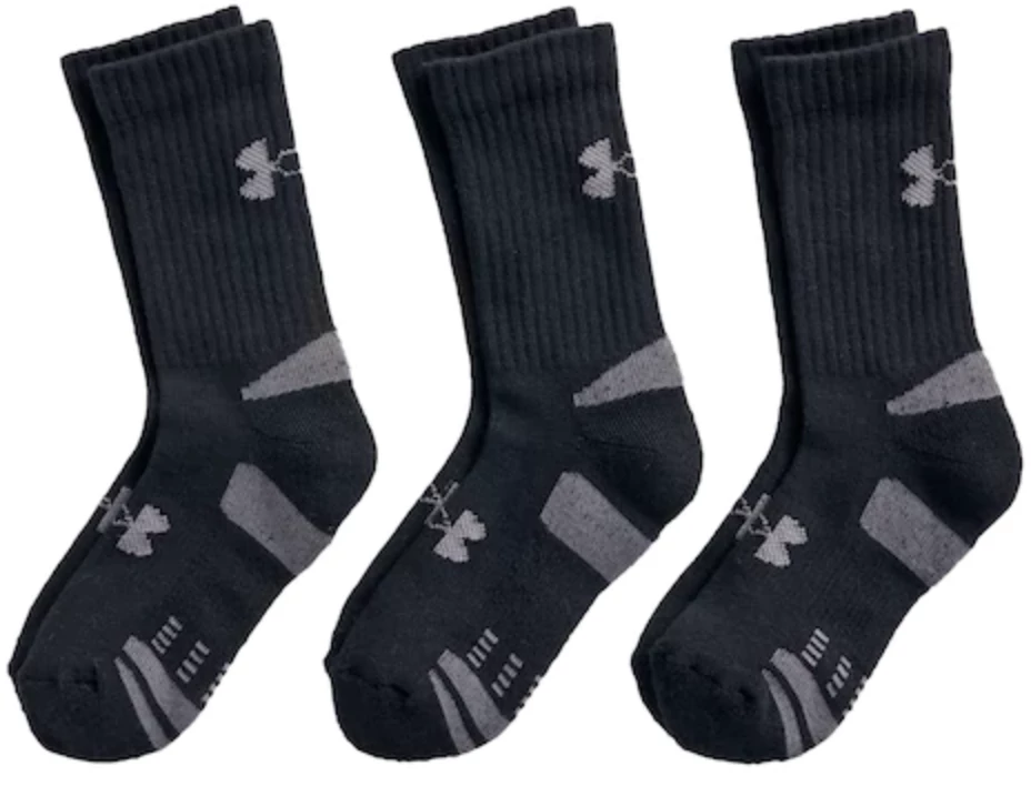 SKU: socks-128428900372 Categories: ACCESSORIES, APPAREL, BASKETBALL, FOOTBALL, FOOTWEAR, GEAR, LACROSSE, SPORTS, YOUTH APPAREL Tags: 3 per pack, Black crew socks, Boys, Crew sock, Cushioned footbed, Heatgear, Socks, UA Heatgear crew socks