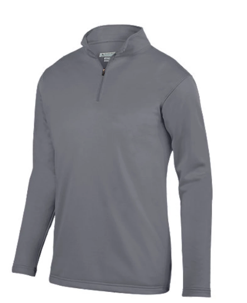 100% polyester performance wicking fleece * Wicks moisture away from the body * Tear away label * Quarter zip pullover style * Set-in sleeves * Open bottom * Double-needle hemmed sleeves and bottom.