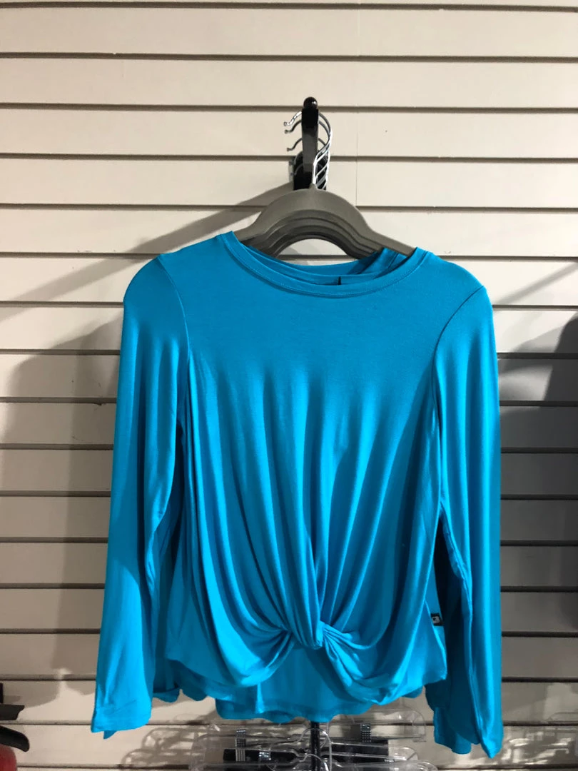 SKU: youth-apparel-1483859558475 Categories: APPAREL, YOUTH APPAREL Tags: Girls long sleeve, Girls top, Long sleeve top, Luna Blue top, Terez, Terez girls, Twist front top